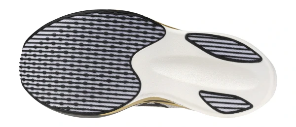 Tüm taban boyunca bulunan SSA yapısı, Mizuno'nun yarışta baştan sona öngördüğü ideal, akıcı adımı destekler.